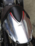 Während die Guzzi bei Pro Italia technisch modifiziert wurde, kümmerte sich 800 Kilometer weiter nördlich Evan Wilcox um die Bodyparts. Der in Ukiah beheimatete Alu-Profi formte die Verkleidung, den Benzintank und auch die Höckersitzbank von Hand aus Aluminium. Evan versenkte geschickt die LED-Scheinwerfer in den Seiten der Dustbin-Fairing und die Rückleuchten im prallen Alu-Heckteil.